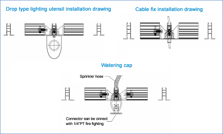 3.十字接頭可加裝消防灑水頭及電線接頭